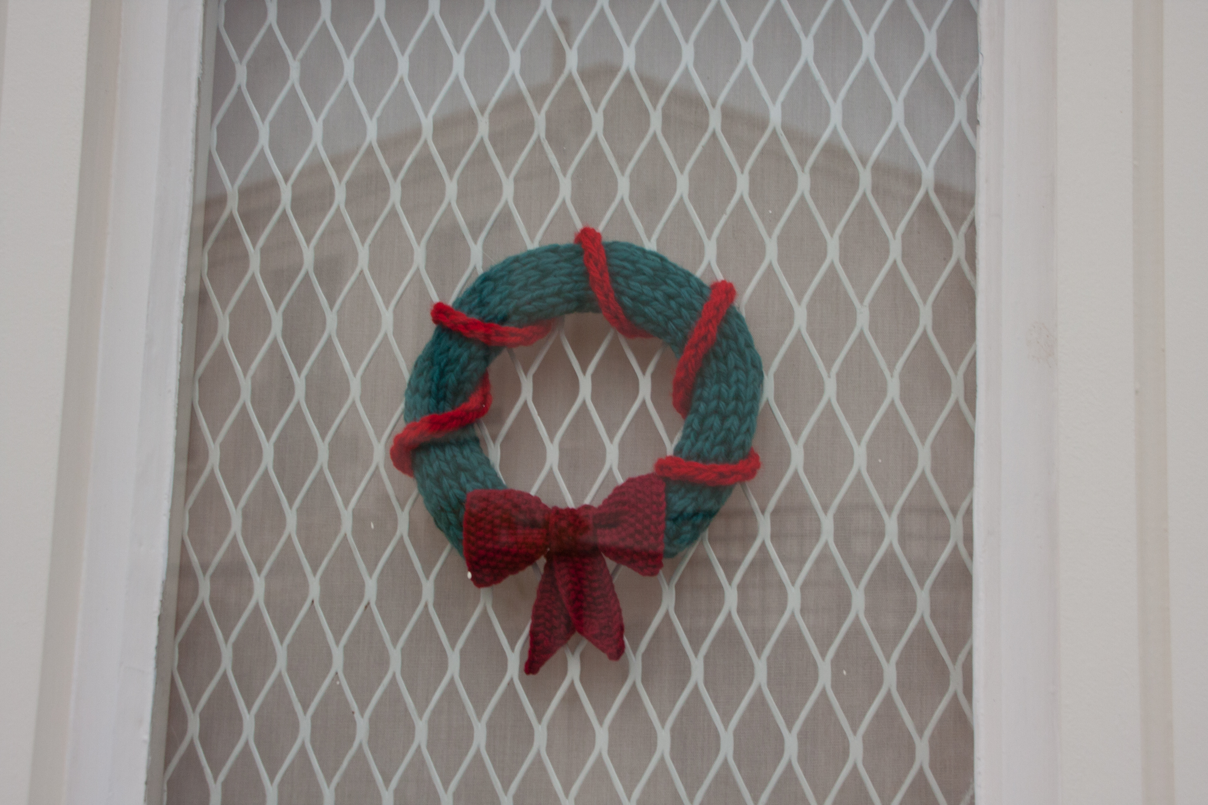 We have also put up the knitted wreath in the window (Note: I am reusing a lot of old pictures in this post. This year’s version had been put up in a rush – still took me two days in total – and therefore looks like a horse shoe with a bow, not worth a picture :))