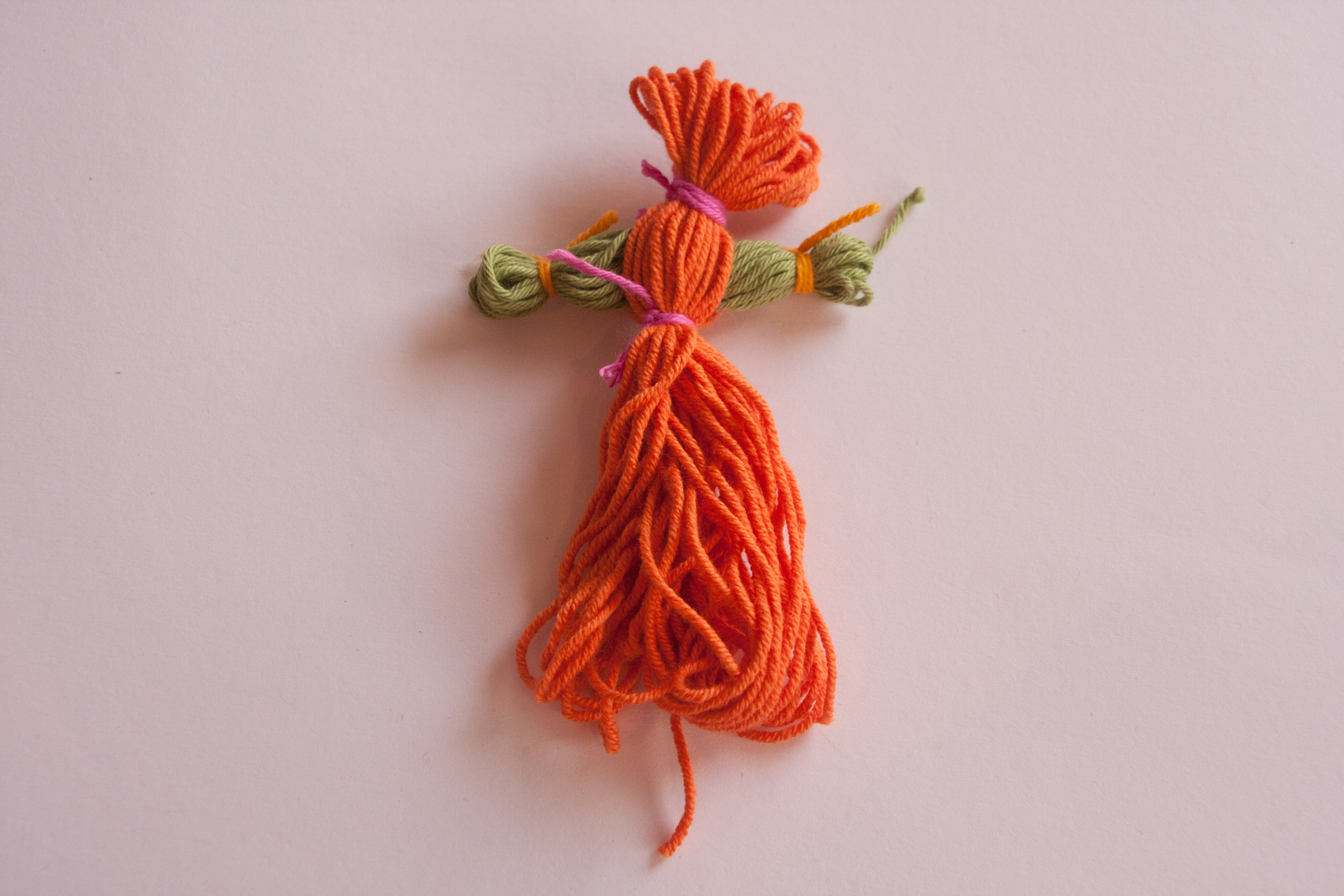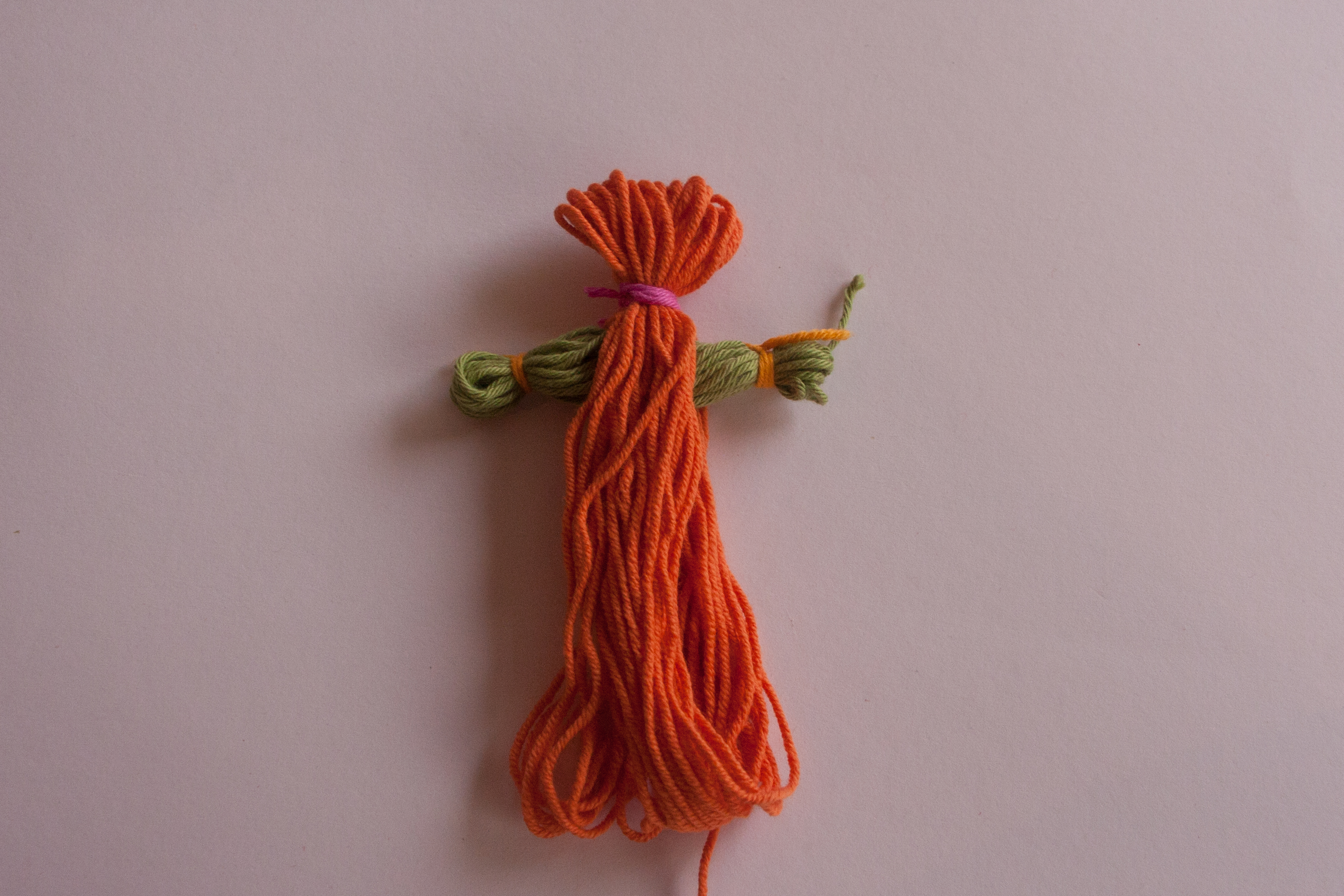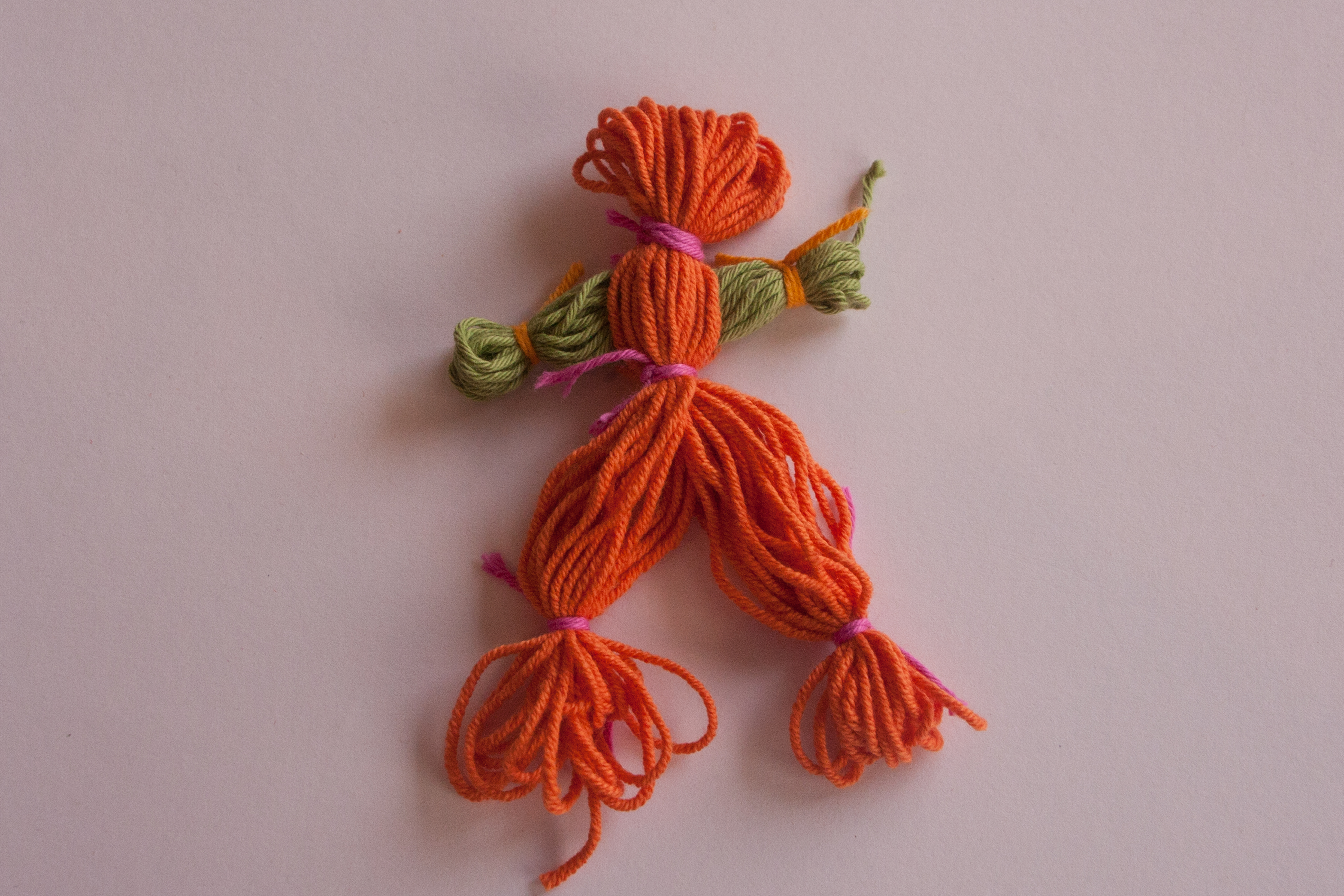 When I created that big mess with my unwound skein of wool over Christmas, I suddenly remembered the yarn dolls we used to make in school.