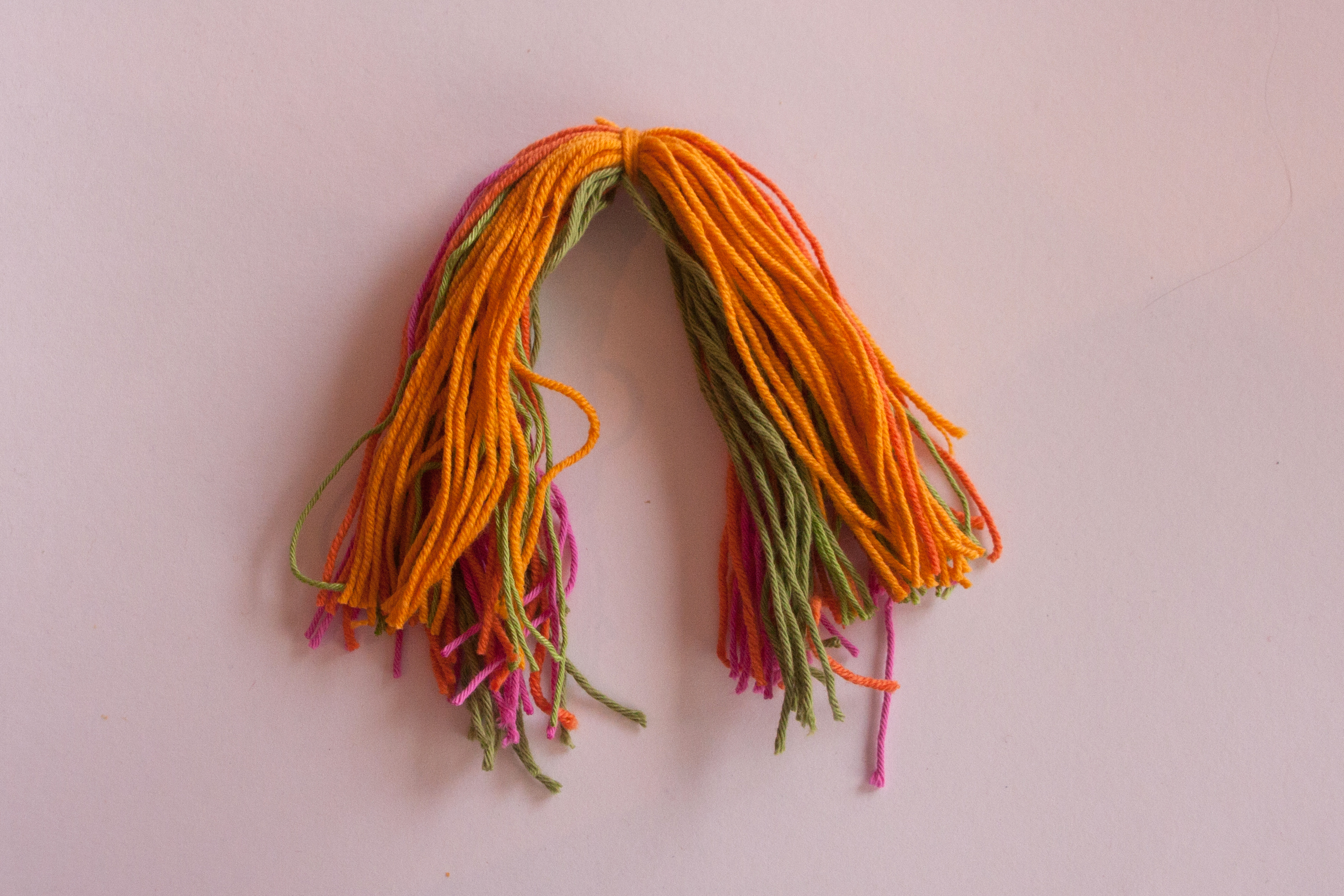 Carefully remove the book, making sure the yarn doesn’t collapse to a big mess. Tie a knot around the top to keep everything together and a round head.