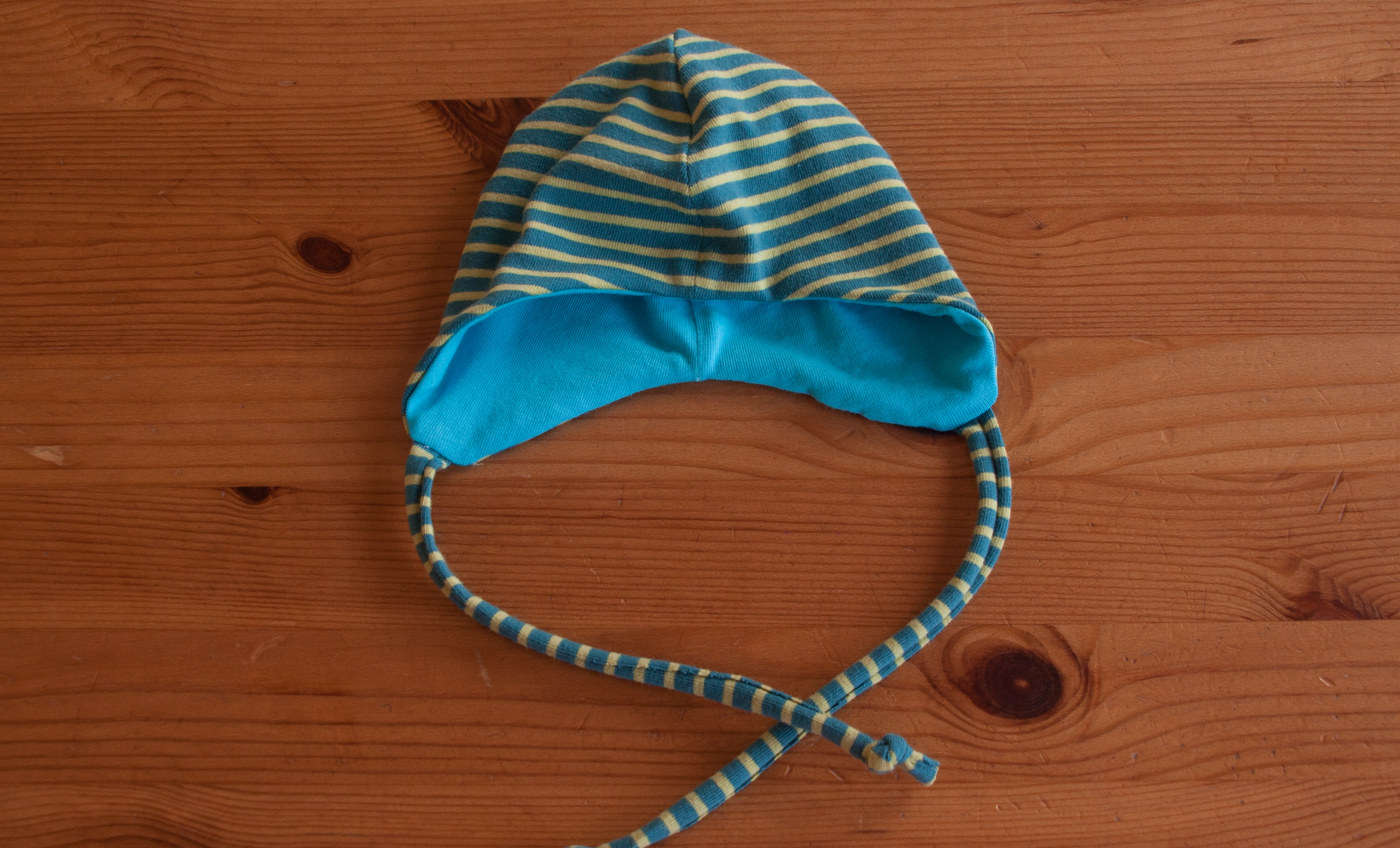The fabric had once been chosen by another niece for a shirt. But I think she wouldn’t find it “cool” so it is better used for a baby hat. It is lovely to see how these things travel through the family.