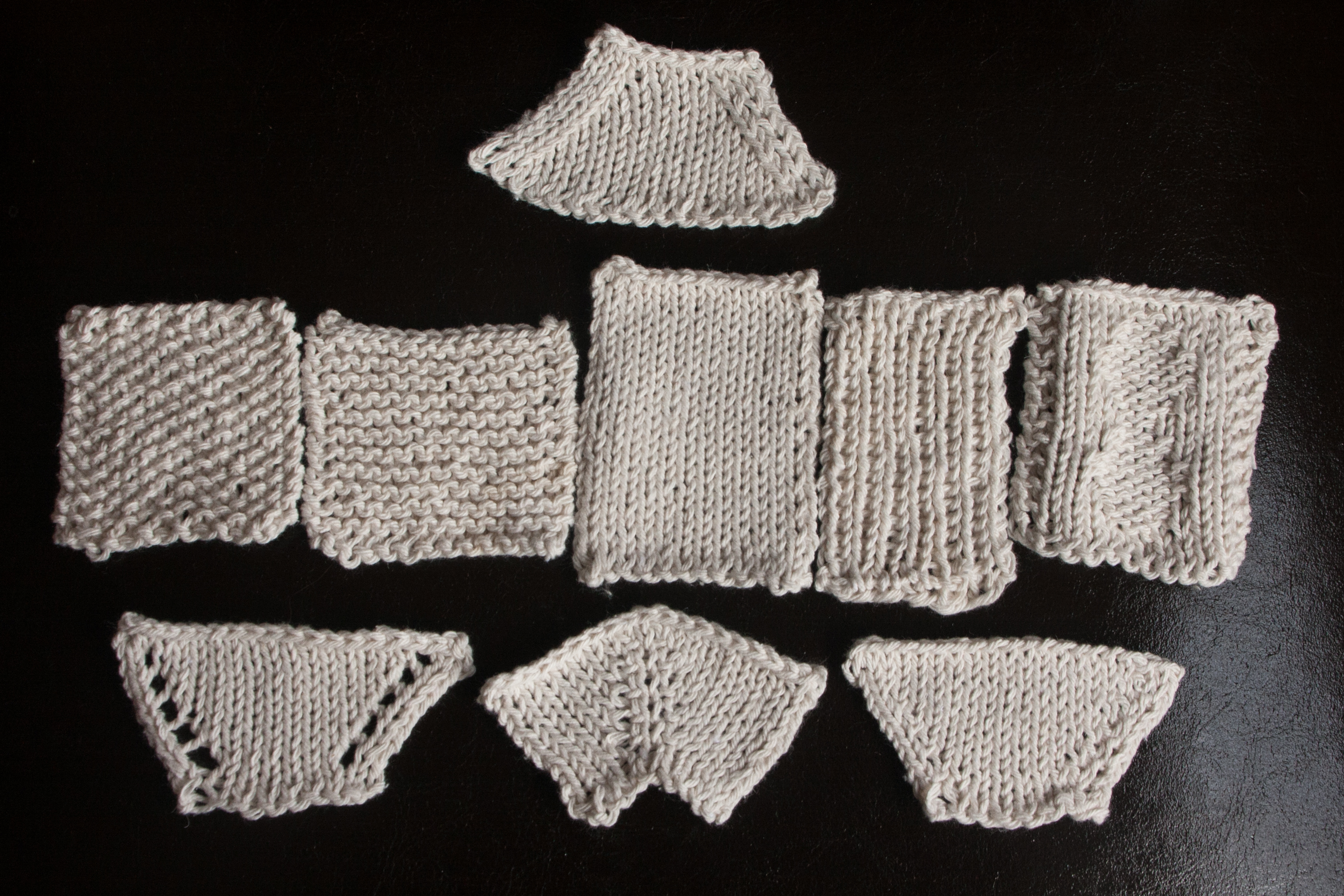 I am thinking of letting them practice the stitches and produce samples rather than just letting them knit an unwearable scarf. I have been inviting people to those classes and quite a few are traumatised by past knitting experience and it always seems to involve a long stretchy thing. So I really want to avoid scarfs.
