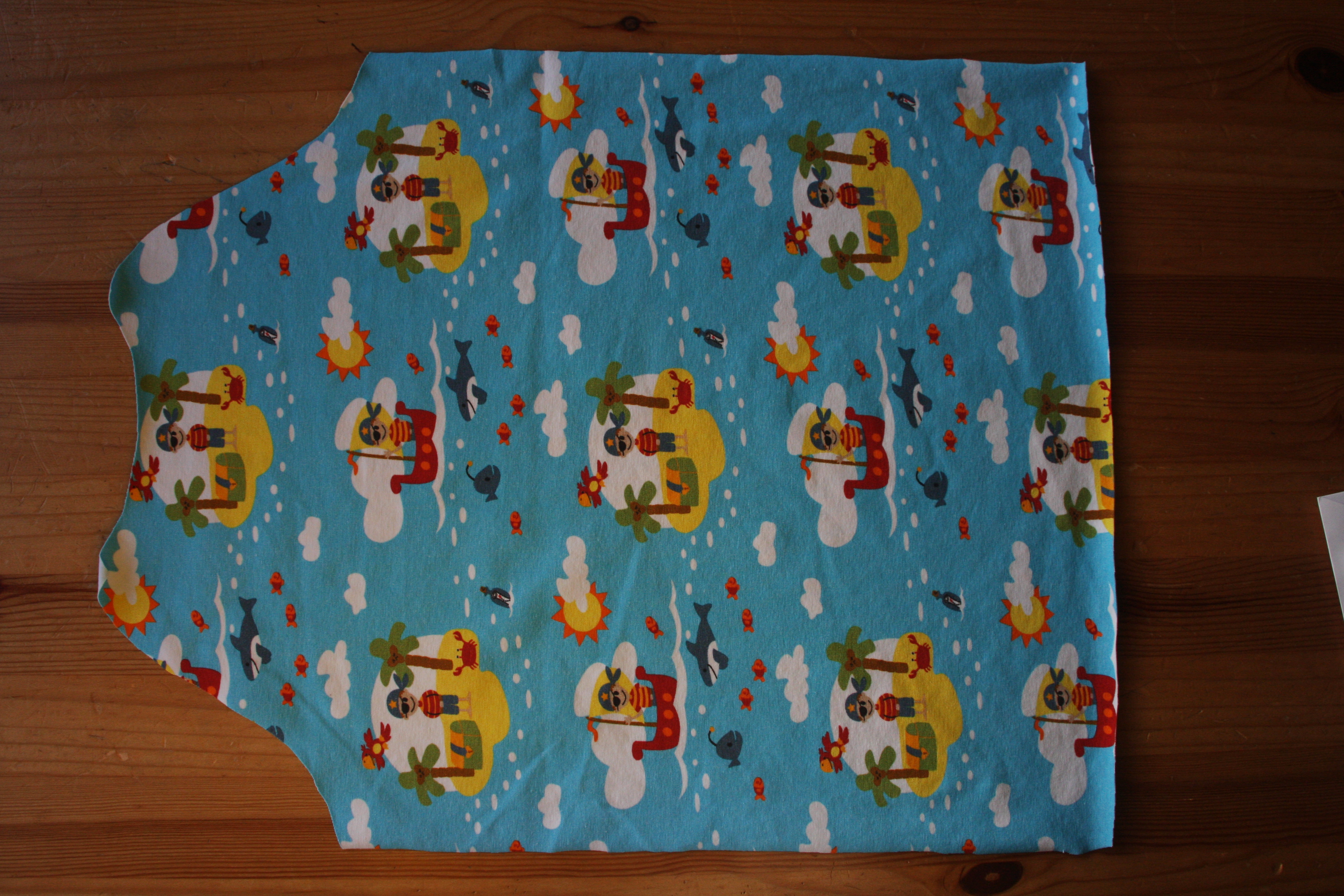 For the pirate shirt I had plenty of fabric because I had bought that fabric for a onesie which never happened. So for once I actually looked at the position of the pattern when cutting out rather than just squeezing it into a corner of the fabric to have as little waste as possible and so the motives are spread out evenly.