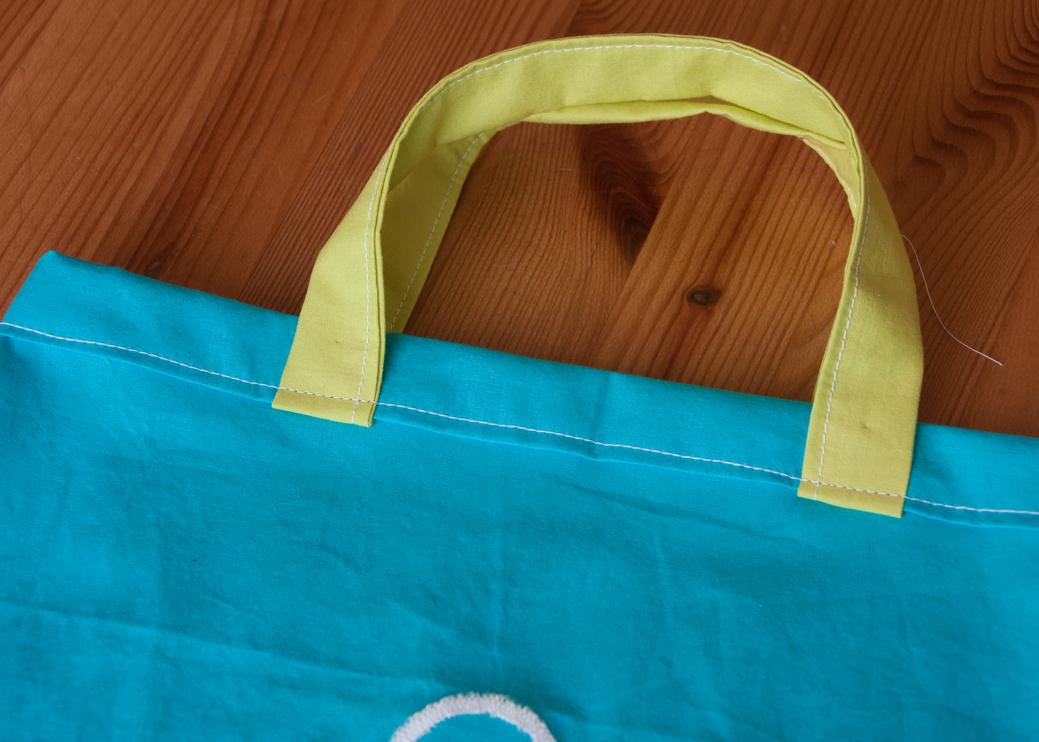 12. Back to the handles. Close them by top stitching close to the folded edges.
