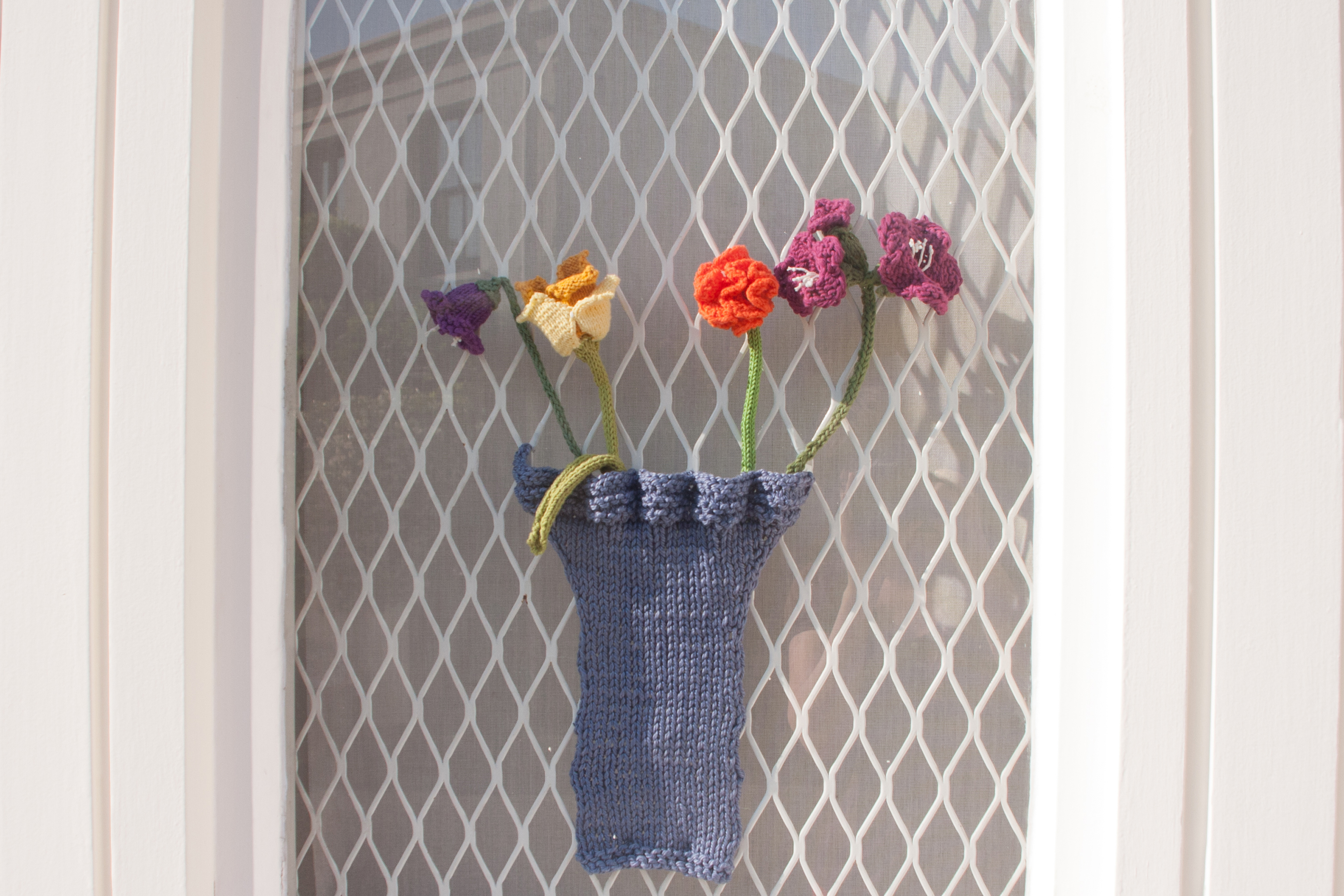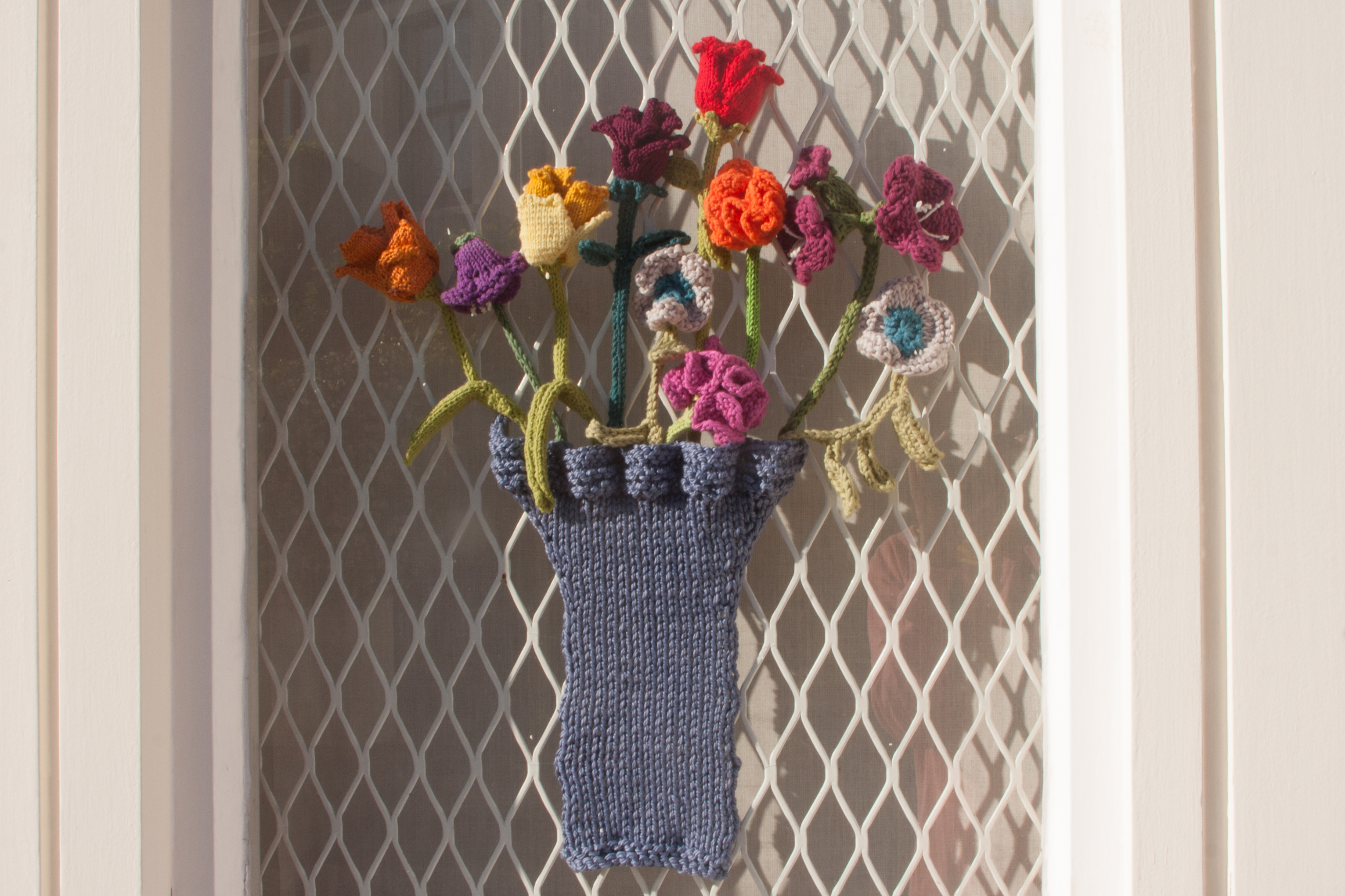 Just a quick picturesque update on the window yarn bombing. Somehow I am not as quick as I thought, slowed down by all sorts of things, visitors staying, possible bronchitis in combination with stiff neck, children refusing both to cook or going to nursery by themselves,….